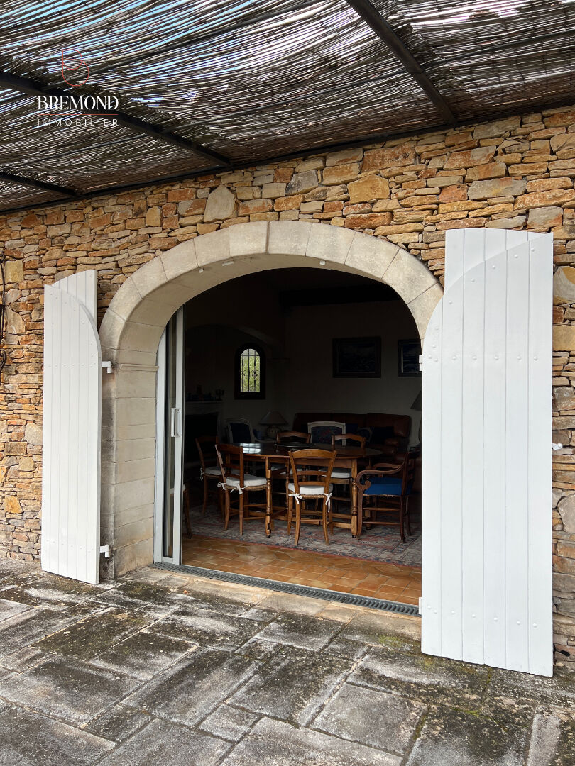 Authentique propriété provençale aux matériaux de qualités avec une vue exceptionnelle de 188 m2 habitables, nichée sur un magnifique terrain d’environ 2,6 hectares. Cette dernière dispose d’un porche, une entrée, une buanderie avec de nombreux rangements et d’un accès à une cave creusée dans la roche, une première partie (la plus ancienne) se compose d’une chambre, une salle de bains avec wc et bidet, un bureau/ bibliothèque, une véranda d’environ 18 m2. La partie principale, cuisine indépendante aménagée et équipée, salon/ Séjour avec un plafond cathédrale et cheminée avec insert donnant accès sur une terrasse, un dégagement, un wc avec lave mains, un dressing, une chambre, une salle de bains, une suite parentale avec salle de bains et placards avec accès sur une seconde terrasse. Le jardin est arboré et paysagé. Bassin de nage de 11m, un studio indépendant de 30 m2 composé d’une chambre avec salle d’eau, un wc indépendant, une buanderie. Cabanons de rangements, serre, abri voiture. Un véritable coup de coeur.